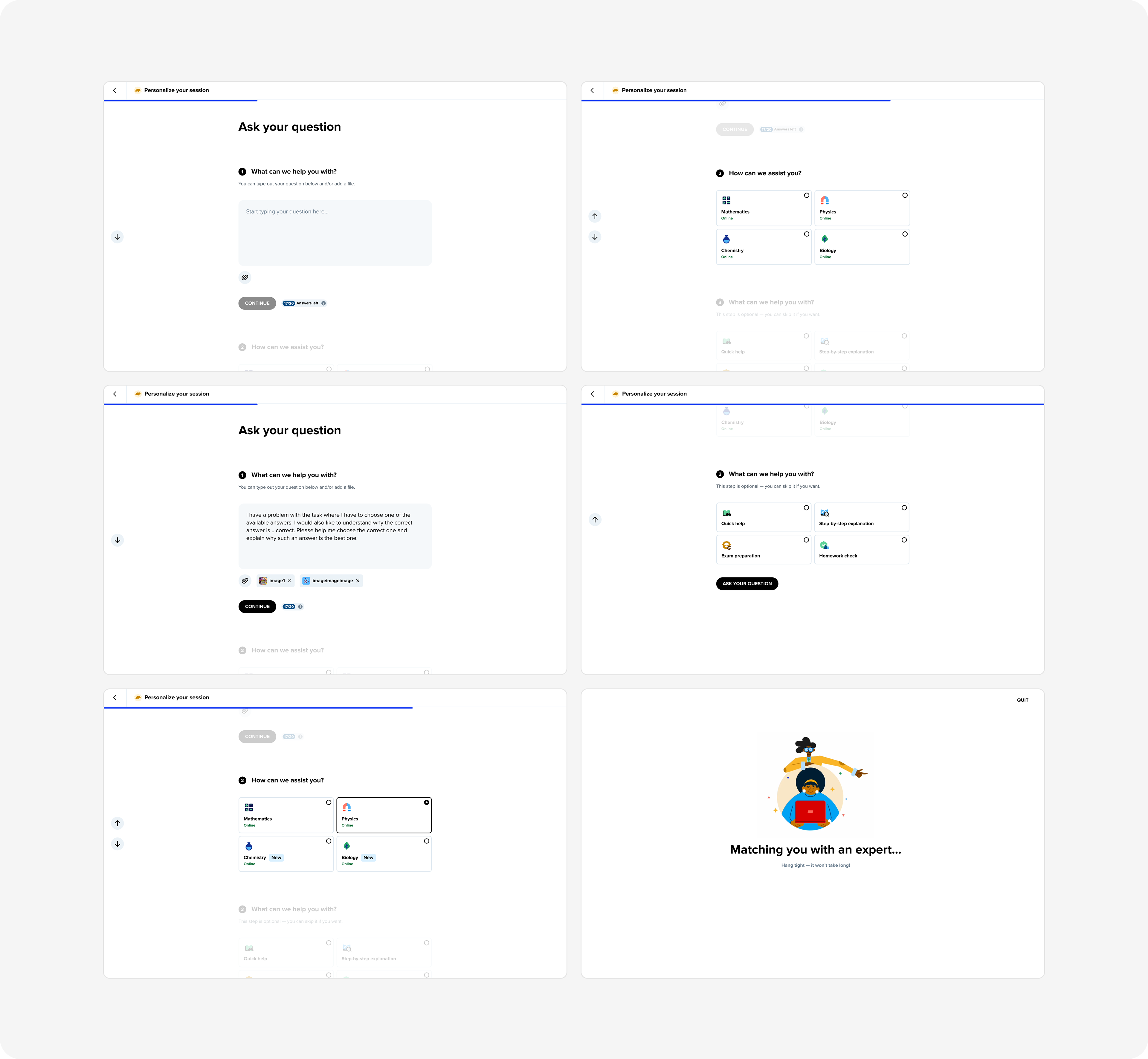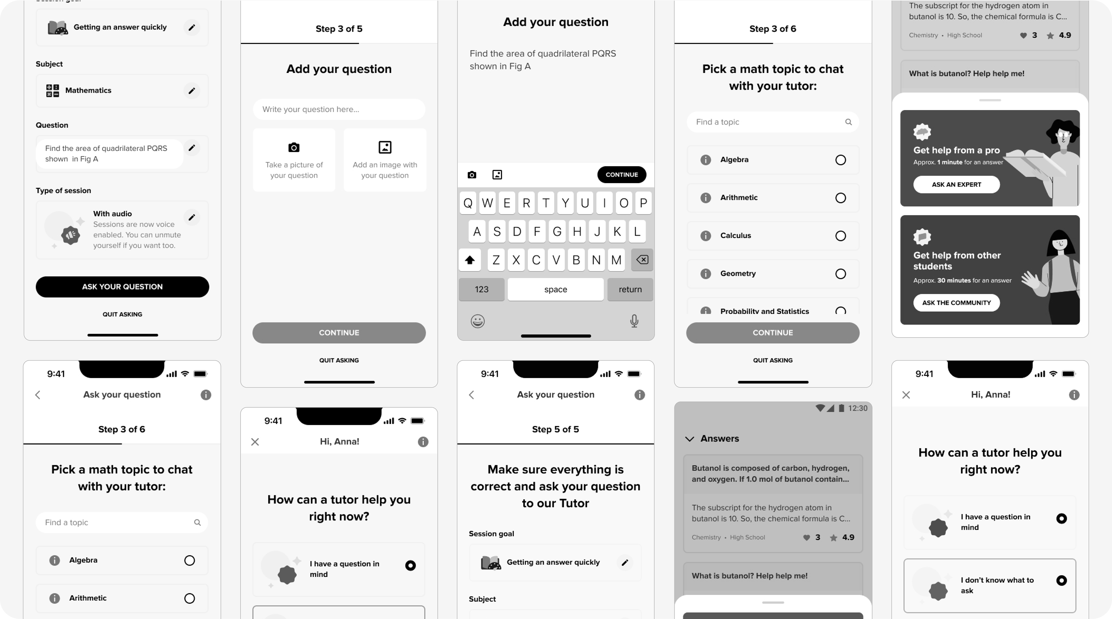 Our goal was to make the process of asking a new question, simpler and faster for Brainly Tutoring students. We observed that many paying users did not use our product even once.